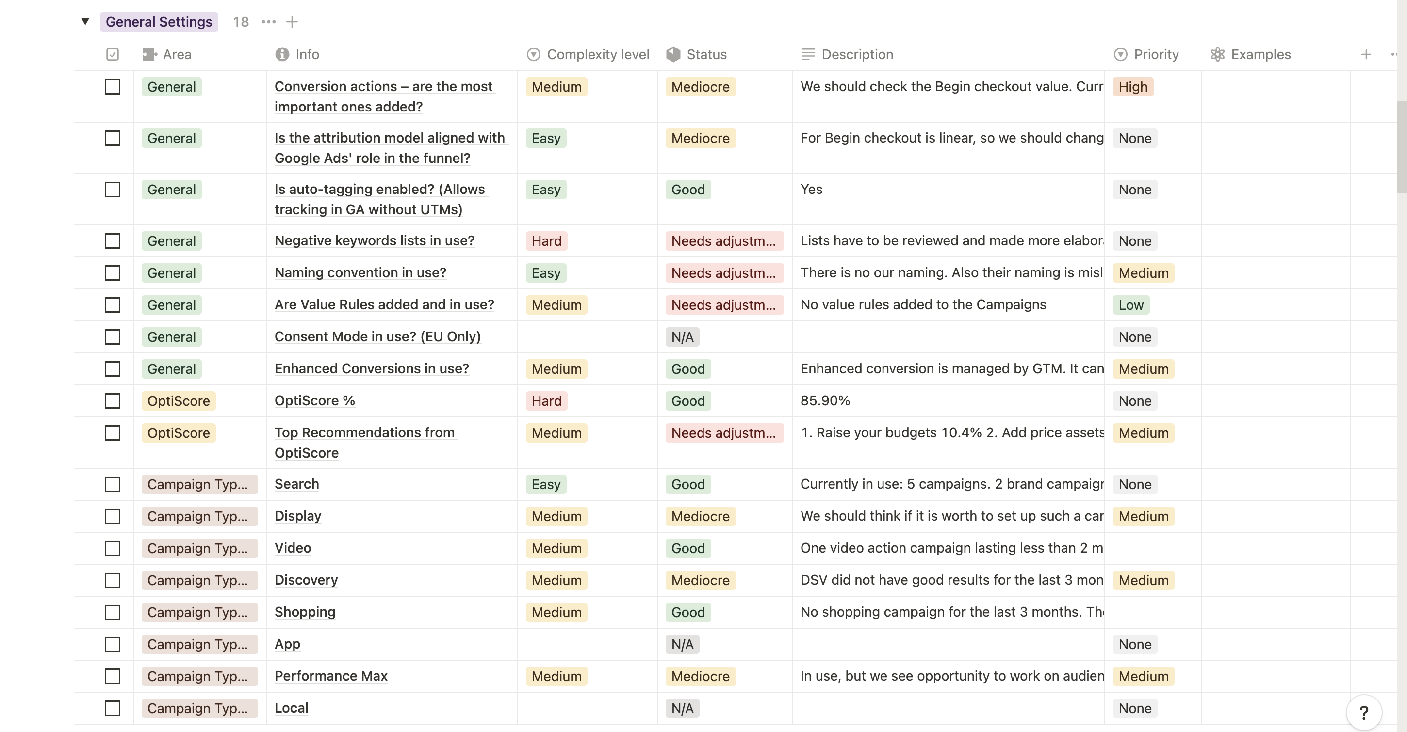 After a week, every channel checklist is ready. Experts present a list of recommendations from their areas.