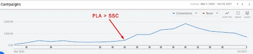 - Implementing Smart Shopping Campaigns as an improved substitute of obsolete standard Product Listing Ads. As we were generating a few hundred conversions a month on this account, we could easily allow Google Ads algorithms to generate sales. As a result, we saved valuable time on working on the micro-level, which we then could spend working on the macro-level analyses. This allowed us to decide on the ROI level in every campaign.