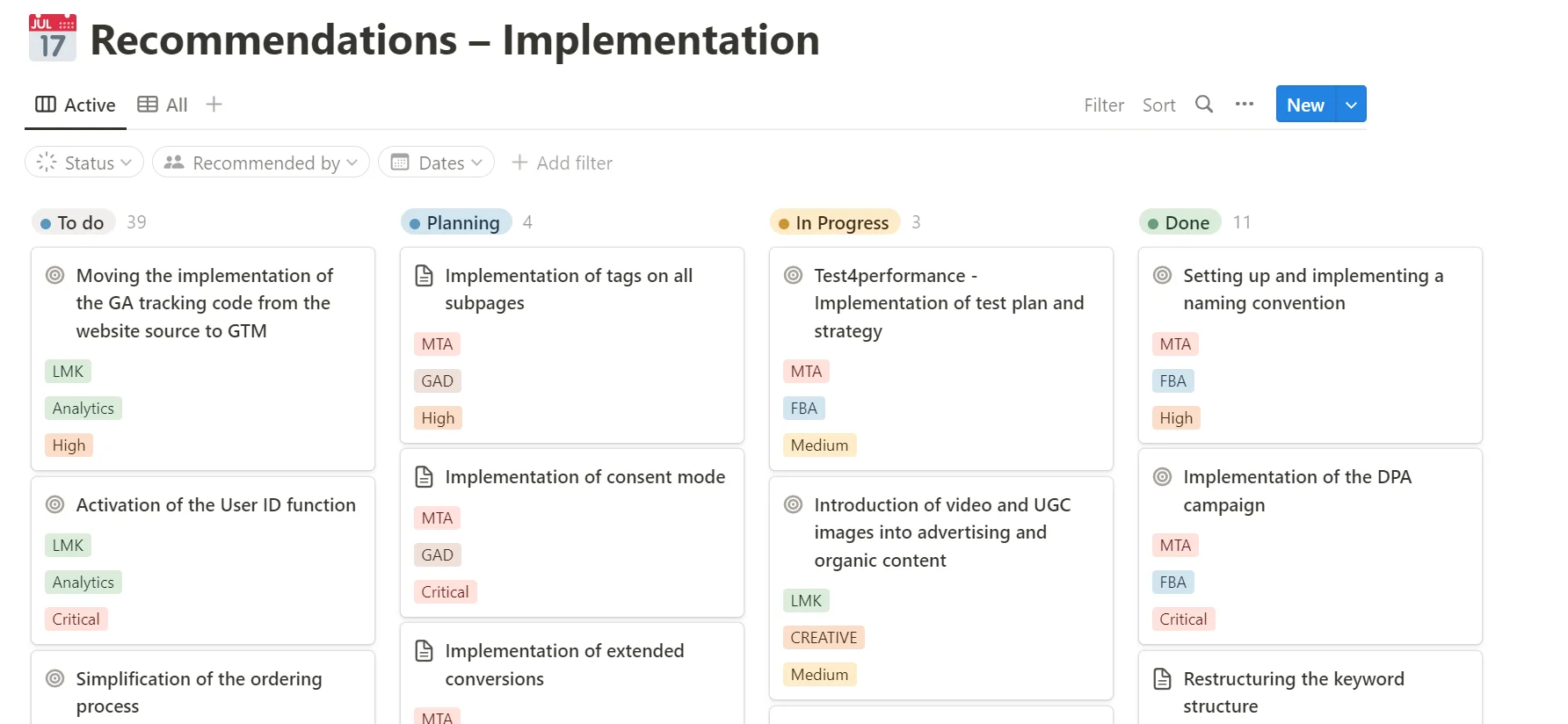 - Organized all 57 recommendations in a Kanban table