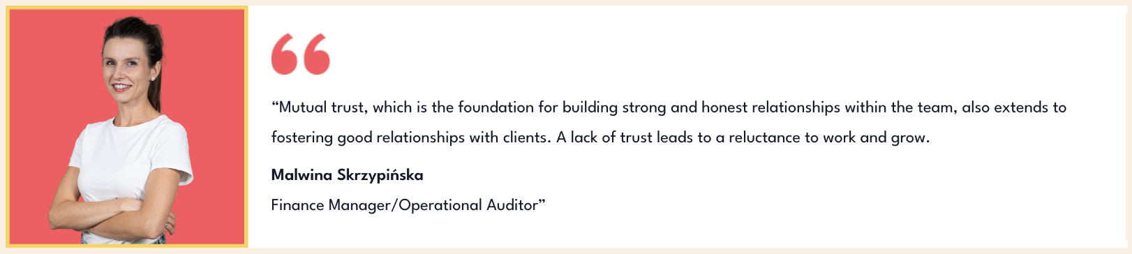 You cannot develop your skills without the support of others, who encourage you to reach new heights, new projects. That’s why the ability to delegate responsibility is incredibly important to us. But for that to happen in a team, there must be trust, and we trust each other from the start. Thanks to this, we can develop and take on new challenges.